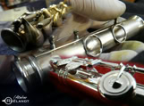 Pads of diverse dimensions had been forced into each key which had been considerably too thick. This particular Louis Lot needs a very thin pad, which is more delicate to put into place, but incontestably determines the sonority of the instrument.