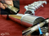 Finally to redress the curved warp on the tube and some scattered dents along the instrument, we had first to consider that the tube was made from a rolled sheet of silver metal which was then soldered with silver. In craft-made Louis Lot Flutes, sublime for their sonority, nonetheless, the visible soldered bonding of the whole length of the tube was done with modified silver.