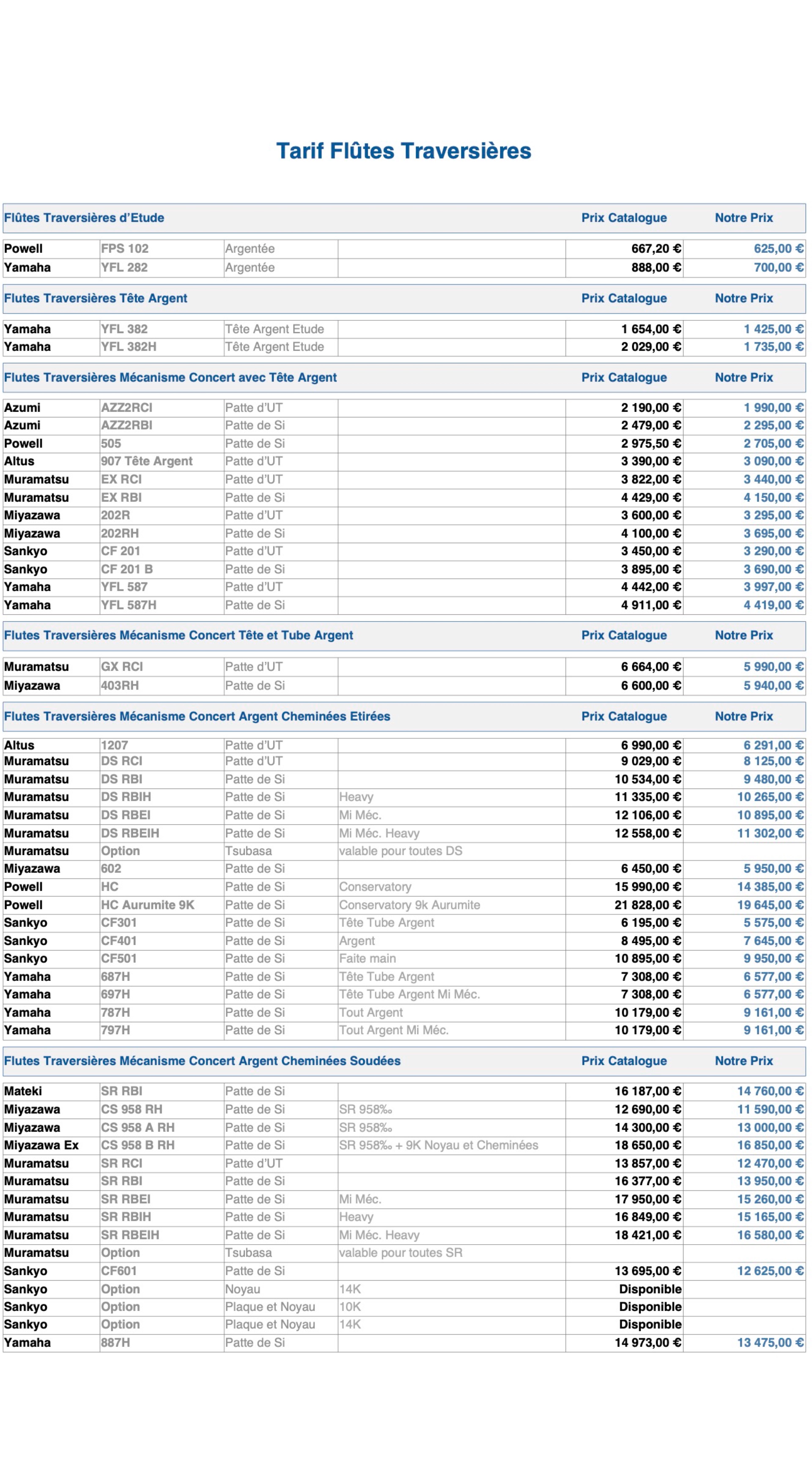Tarif Flûtes Traversières